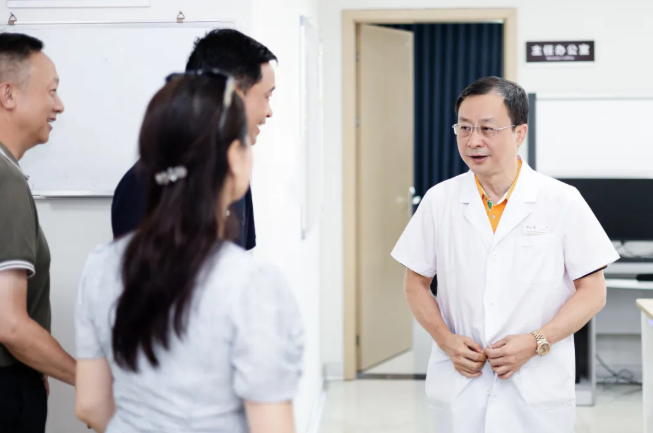 參觀過程中,譚董事長(zhǎng)一行先后來到醫(yī)院門診部、介入手術(shù)室,并走進(jìn)住院病區(qū),與醫(yī)院專家團(tuán)隊(duì)進(jìn)行了親切互動(dòng)。